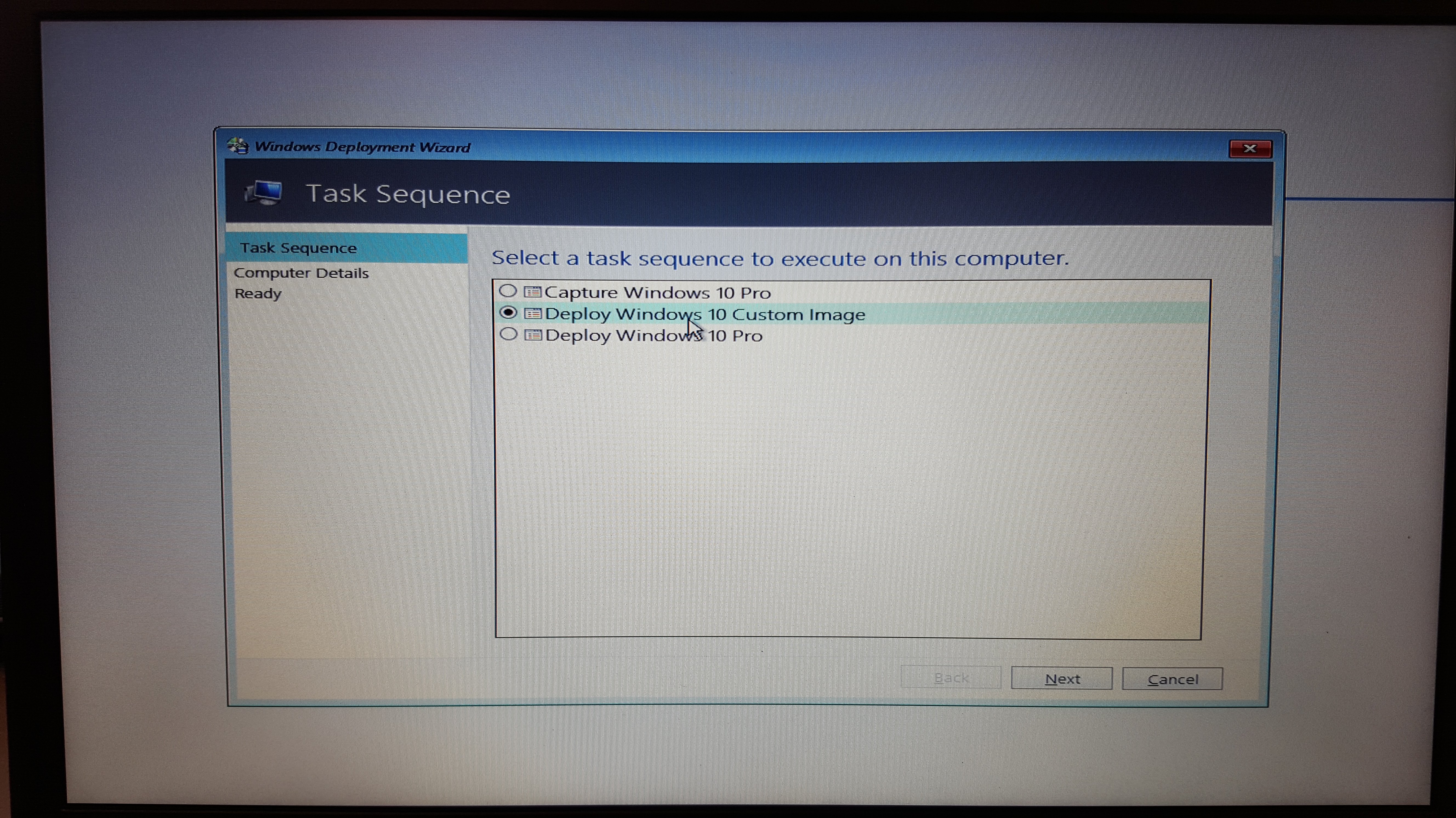 You now need to boot to the USB drive. Once booted, you should see the MDT Deployment Wizard open up.